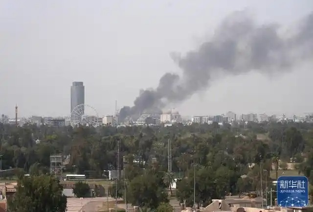 ↑3月21日,位于伊拉克首都巴格达曼苏尔区的巴格达国际会展中心附近升起浓烟。